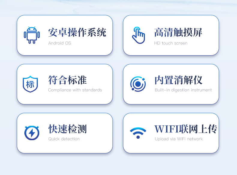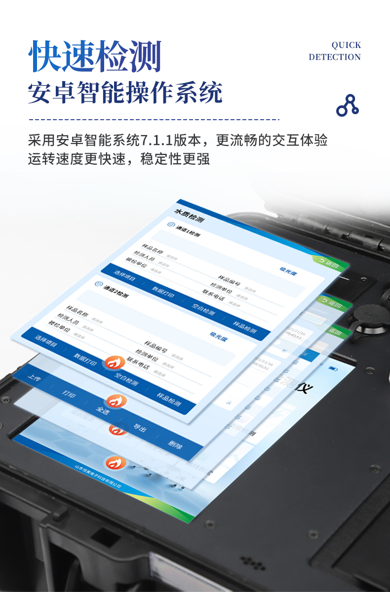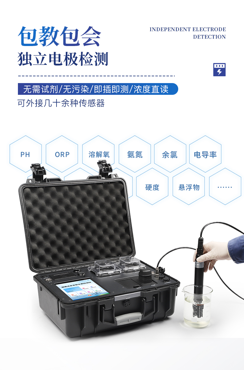 5、便携一体式检测设备,内置大容量锂电池,可一机实现户外水样消解、测定。