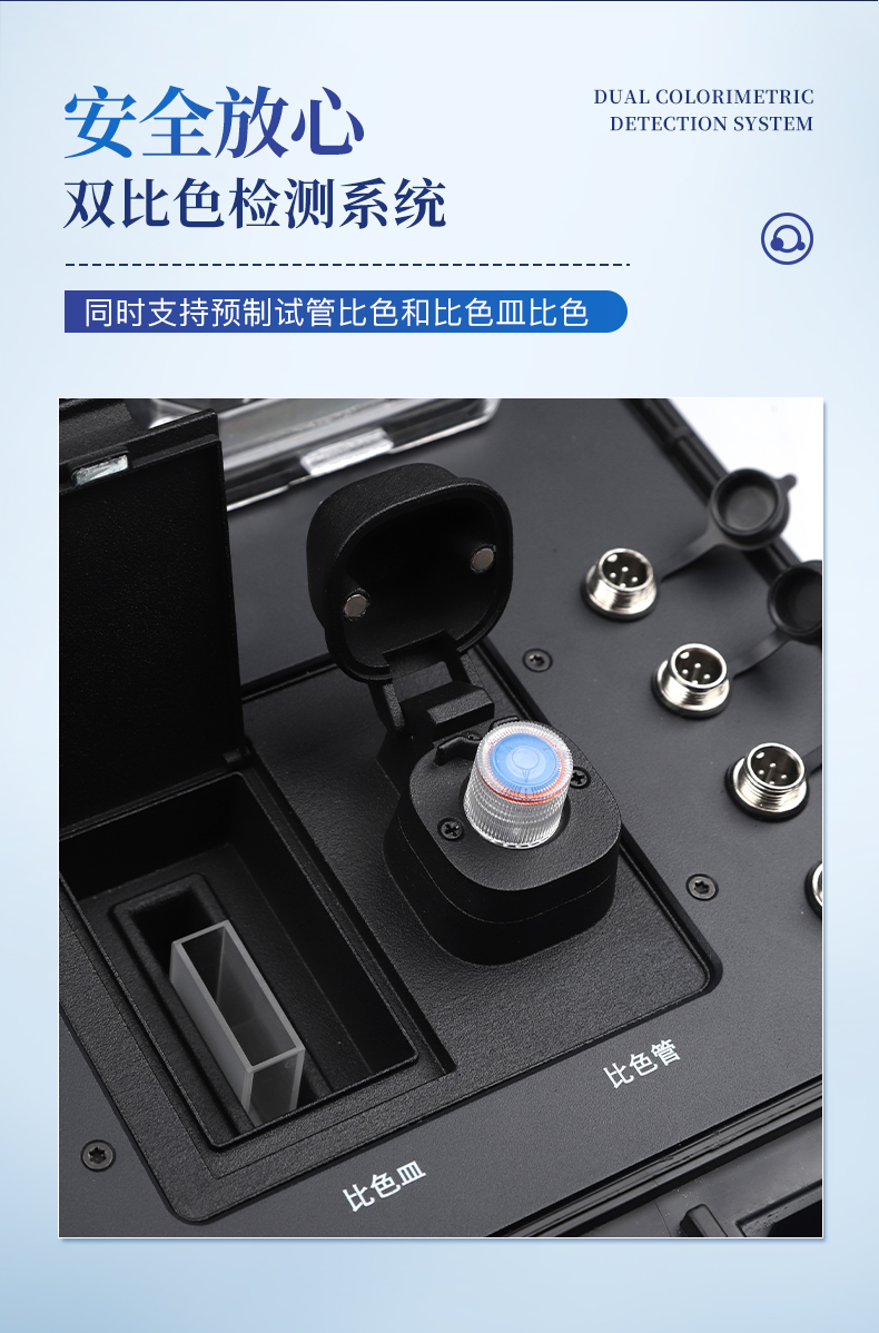 2、双比色检测系统,同时支持预制试管比色和比色皿比色;