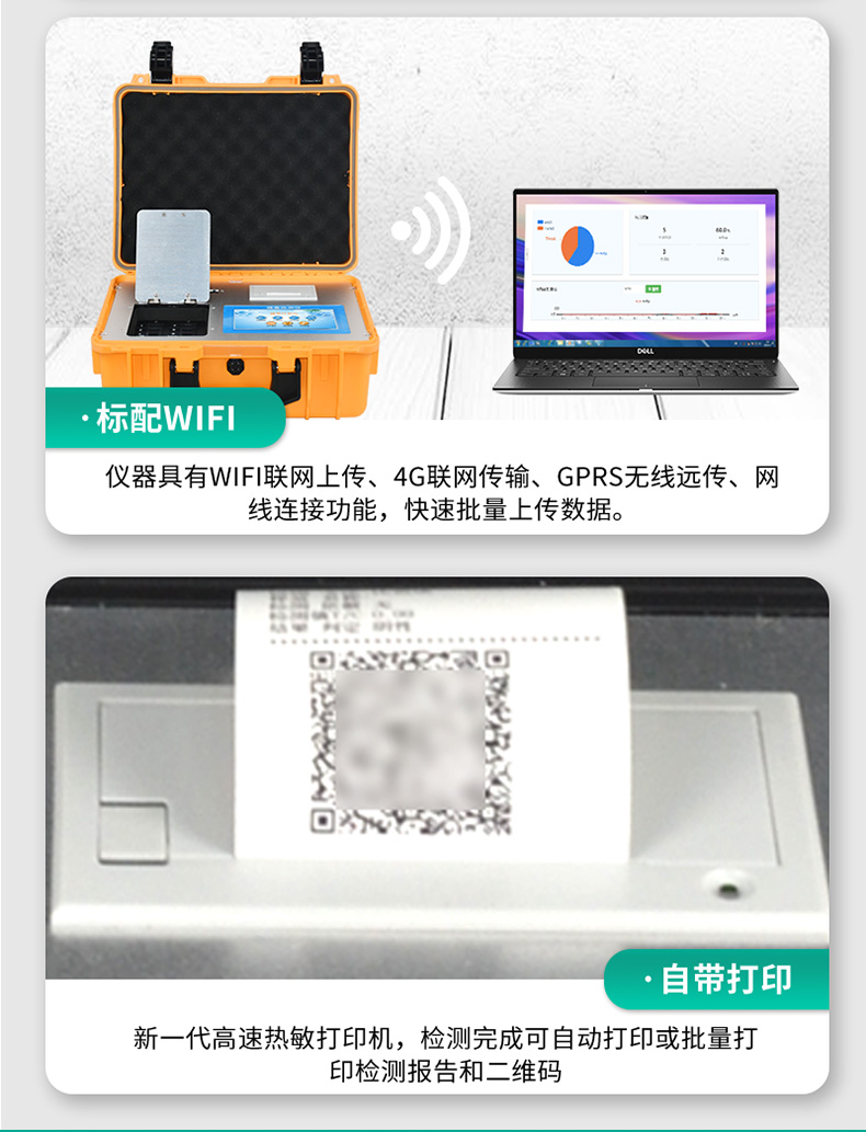 3、新一代高速热敏打印机,检测完成可自动打印或批量打印检测报告和二维码。