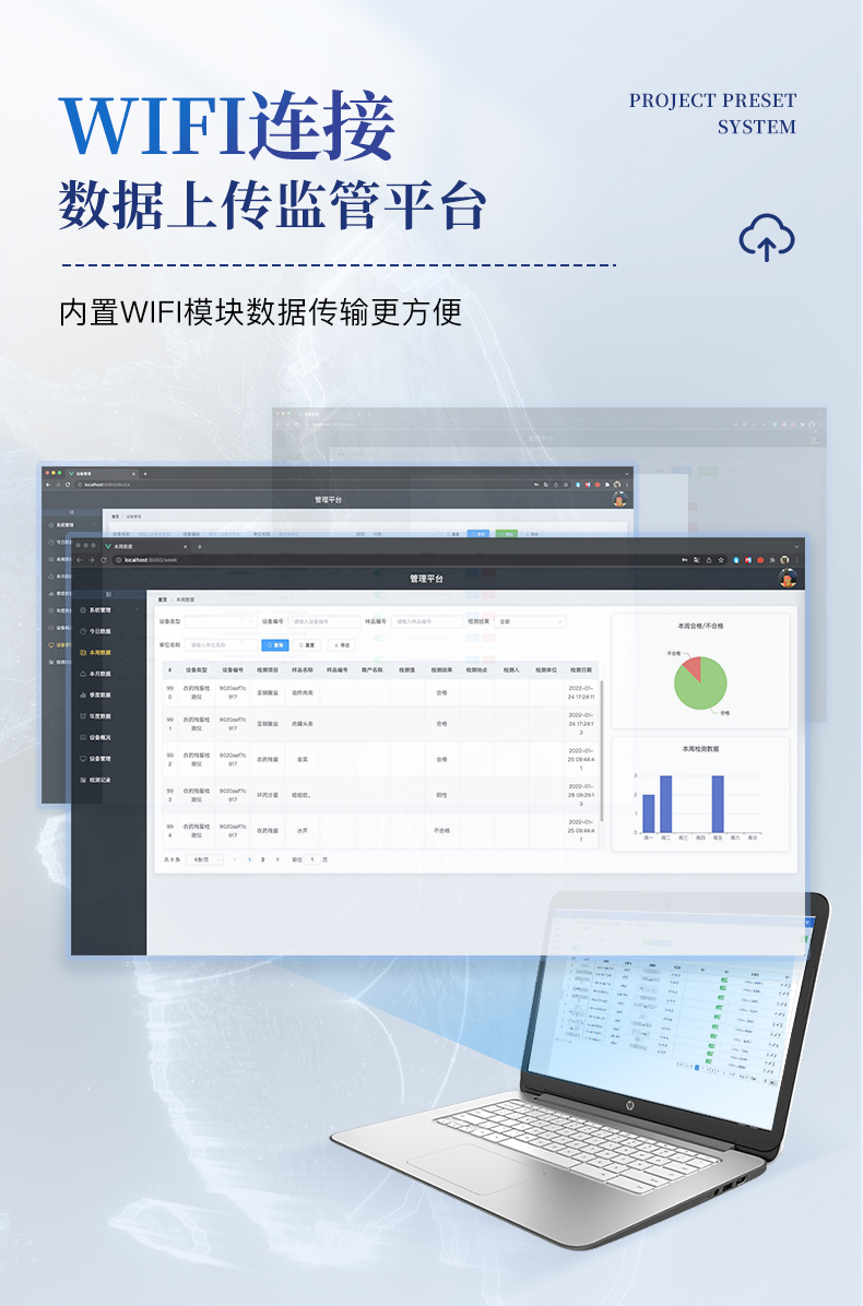 6、仪器具有wifi联网功能,可将数据快速上传电脑,进行数据管理与统计,4G信号GPRS远传功能,可插手机卡实现数据远传平台,。