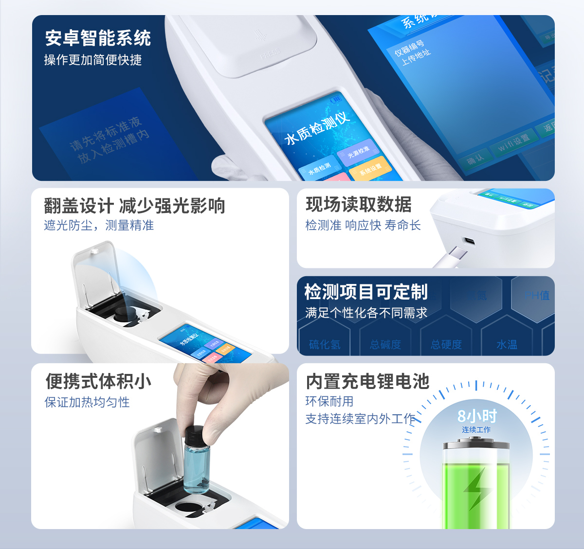 ⑥便携式体积小,重量轻,方便户外检测;