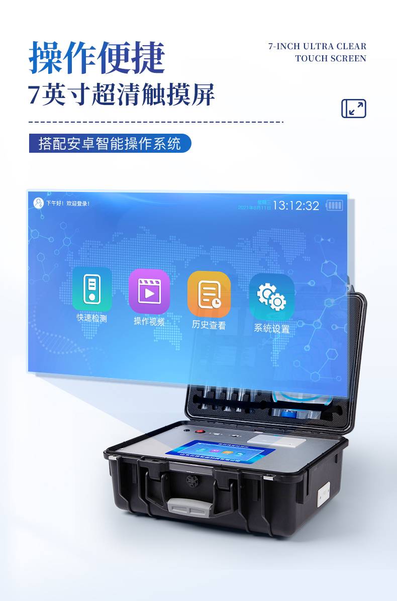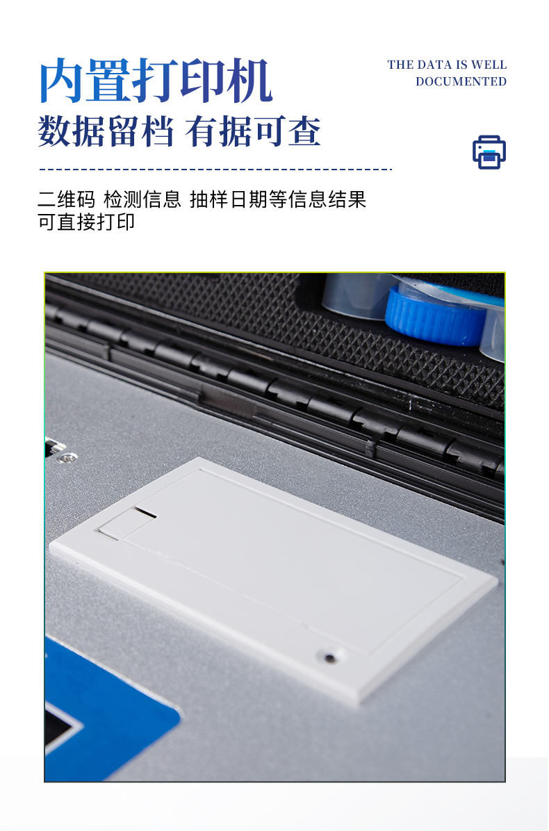 | ★1、安卓智能操作系统,采用更加**UI交互界面,仪器具有wifi联网上传、4G联网传输、GPRS无线远传、网线连接功能,快速批量上传数据。 | 2、智能化程度高,仪器具有自检功能:具有开机自检和调零功能,具有自动检测重复性功能。 | ★3、新一代高速热敏打印机,检测完成可自动打印检测报告和二维码。 | ★4、仪器带有监管平台,数据可局域网和互联网数据上传,检测结果直接传至食品安全监管平台。进行区域食品安全监管及大数据分析处理与数据统计,检测区域食品安全长短期动态,达到食品安全问题预估、预警 | 5、一体化主机,包含食品安全检测模块、多通道农药残留检测模块、胶体金免疫层析检测模块。 | 6、一体化便携式快检设备,满足现场及流动检测使用需求,能够在同一软件下实现所有检测项目的检测,并可通过同一窗口直观显示检测结果。 | 7、胶体金模块检测方式:轨道式自动传输扫描,检测完成后自动退出检测卡。 | ★8、仪器内置摄像头拍照,可显示金标卡实时图像,系统自动分析并呈现出CT曲线图,CT线自动识别,无需手动调整。 | 9、仪器具有品类多种类样品菜单库,可灵活选择检测样品,不同的检测通道可同时检测不同的样品项目。 | ★10、仪器内置操作教学视频,点击视频模块即可快速查看,方便用户使用。 | 11、样品处理简单省力,整体操作快速、安全、便捷。 | ★12、仪器可配置身份识别功能,通过密码或刷证件开机,防止非工作人员操作等。 | 13、高灵敏度,高检测精度,高重复性精度,扫描式高精度光学传感器。 | 14、内置强大的数据库,可在仪器上直接选择样品名称、检测指标、送检单位等信息,也可在仪器上直接编辑录入样品名称、检测指标、送检单位等信息并保存进样品数据库。 | 15、仪器具有重新校准、锁定、恢复出厂设置功能。 | 16、结果判定线可修改,对照值标定值可保存,断电不丢失数据。 | 17、兼容市场上所有的胶体金卡,使用耗材不受限制,极大增强用户使用体验。 |