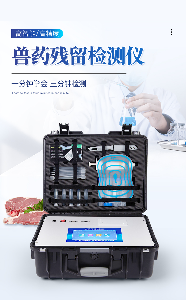 抗生素残留检测仪可现场快速检测抗生素类残留、兽药残留、激素类残留、毒素类残留,化学类残留等多种项目,如可快速检测四环素类、硝基呋喃类、磺胺类、沙星类、喹诺酮类、氯霉素、庆大霉素、链霉素、喹乙醇代谢物、硫酸链霉素、羧苄青霉素、噻孢菌素钠、阿莫西林、氨苄西林、红霉素、潮霉素B、安普霉紊、杆菌肽等抗生素快速检测;还可检测激素类:盐酸克伦特罗、沙丁胺醇、莱克多巴胺、己烯雌酚等,水产兽药:呋喃妥因代谢、呋喃西林代谢、呋喃它酮代谢、呋喃唑酮代谢、孔雀石绿等,毒素类:黄曲酶毒素B1、呕吐毒素、玉米赤霉烯酮、赭曲霉毒素A等,化学类药物:氨丙琳、甲基吡啶磷、阿灭丁、双甲脒、阿散酸、阿维菌素、氮哌酮、苄青霉家、头孢噻呋、克拉维酸、氯羟吡啶等。