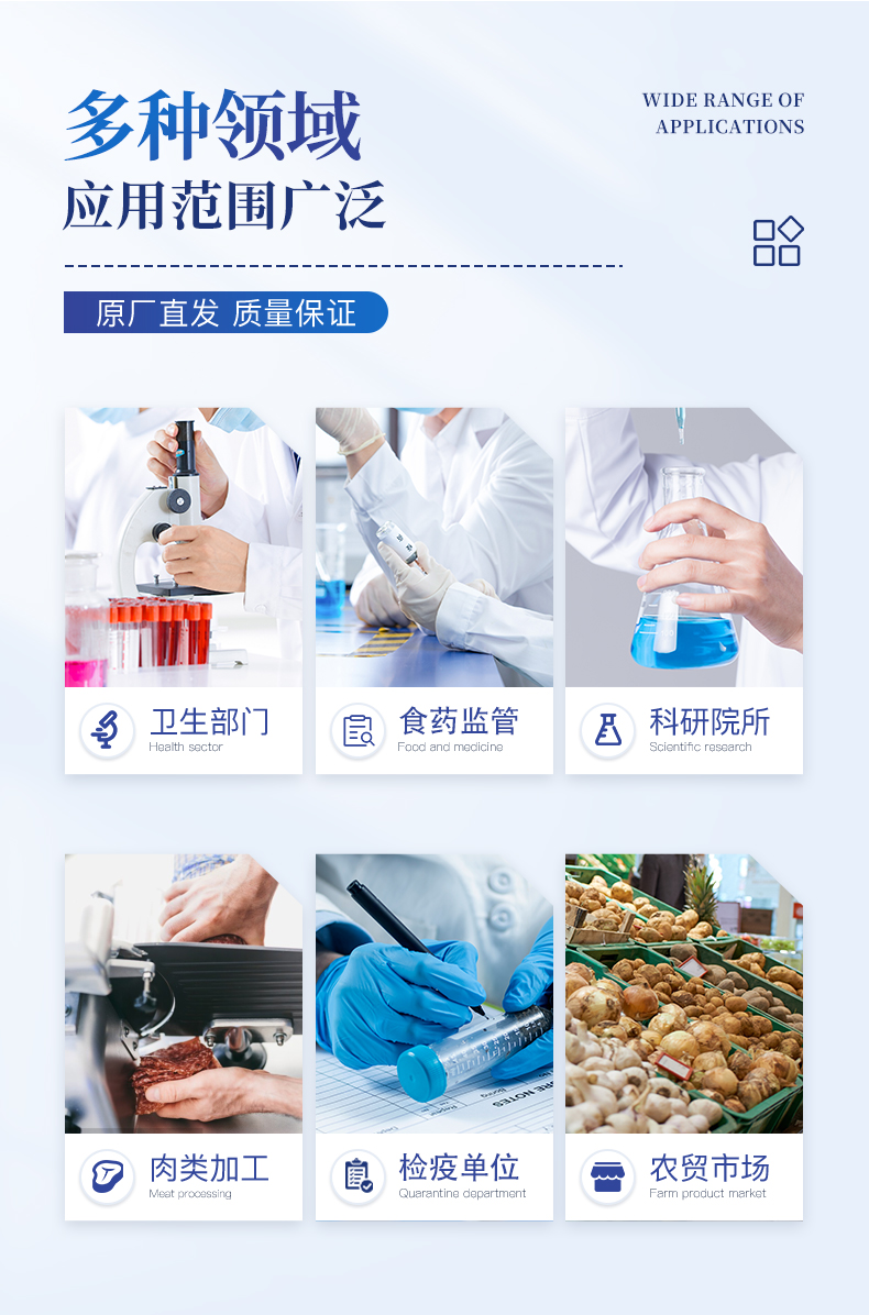 抗生素残留检测仪广泛应用于食药监局、卫生部门、农业部门、养殖场、屠宰场、食品肉产品深加工企业、检验检疫部门等单位使用。