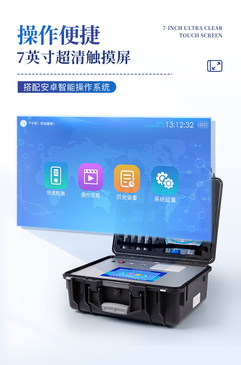 6、一体化便携式快检设备,满足现场及流动检测使用需求,能够在同一软件下实现所有检测项目的检测,并可通过同一窗口直观显示检测结果。
