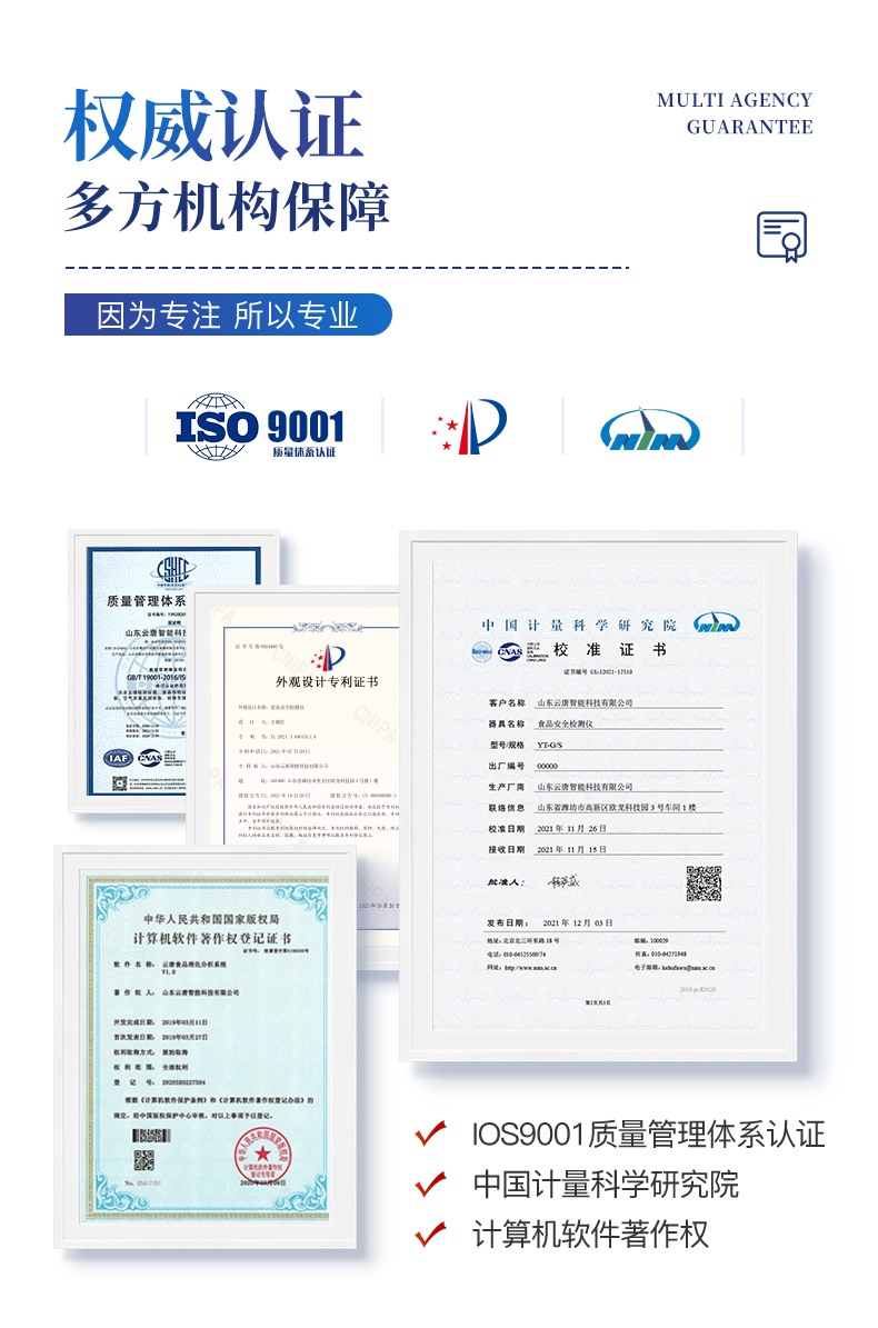 7、内置新国家限量标准,与所测结果进行现场比对,并持续更新标准。