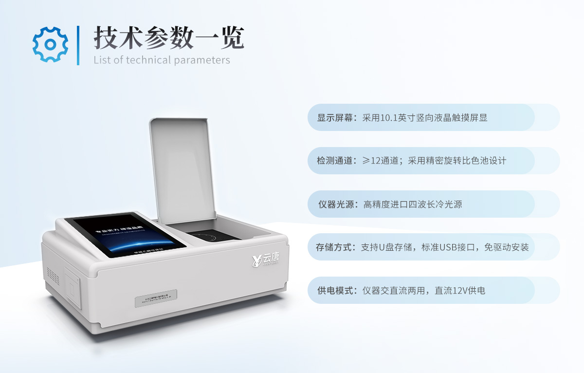 | 仪器采用台式一体化系统检测技术,将分光光度模块、新型农残检测模块、数字化管理模块、无线通讯模块高度集成于一体,支持检测200种食品安全检测项目,同时预留升级检测方法。 | 仪器检测模块标准化、智能化,可随意自由组合。检测箱体内置多个标准检测单元,检测模块可以调整配置。 | 仪器采用全新安卓智能系统,主控芯片采用 ARM Cortex-A7,RK3288/4核处理器,10.1寸高清液晶触摸竖屏,更加**的UI交互界面,运转快捷;仪器配备无线通信模块: 4G(APN)通讯模块、Wifi模块,蓝牙传输,同时具有双USB接口以及RJ45接口能以多种方式实现数据保存和数据传输功能。 | 创新检测模式: | ★检测通道:≥12通道;采用精密旋转比色池设计,使用同芯片同光源校准精度,解决不同光源之间的误差值。1-12通道间误差0.1%。(***:**202022821055.2) | ★仪器具有自动识别比色皿检测功能,即:将样品比色皿放入仪器后,点击样品检测,仪器自动识别比色皿进行通道检测。 | 进口高精光源: | 高精度进口四波长冷光源,通道配置 410、520、590、630nm 波长光源,一个光源芯片驱动一个光源,误差极小,每台设备单独**校准光源,**比对,同时参照四种不同波段光源全方位覆盖市面上99%的农残食品项目检测。 | 智能化操作系统: | 便捷操作系统:设备检测时可在同一检测界面自动对应相关检测通道一次性选择1-12个样品名称,无须退出界面,节省操作时间。 | 数据集成系统:设备首页自动统计检测数据包含:周检测数据、月检测数据,全部检测总数量,均包含检测总数,合格数,不合格数,以及相关柱形分析图,对各项检测数据清晰掌握,无需电脑查询,更加快捷直观。 | 项目预设系统:支持添加单个及多个相同或不相同的任务预设,一键快速调取,每一个任务分别可以设置不同的样品、批次、编号、来源、备注、抽样信息、检测信息、受检信息、复核信息等更多信息。无缝链接平台和APP实时查看下发任务。 | 数据监管系统:同步对接监管平台,数据可局域网和互联网数据上传,检测结果可选择直接传至食品安全监管平台。集成OSS输出存储服务、区分设备定向管理应用,进行区域食品安全监管及大数据分析处理与数据统计,检测区域食品安全长短期动态,达到食品安全问题预估、预警。 | 自定义打印系统:内置全新打印系统,新创自定义打印方式,可按需灵活设置开启或关闭:产品合格证(国家农业部标准要求),二维码,抽样信息、检测信息,受检信息、复核信息、抽样日期、检测日期等信息的打印。 | 系统远程更新功能:可定向分客户分仪器更新系统,按照不同客户后期实际需求添加项目,无需机器返厂,即可远程实时升级全新系统,节省时间成本及避免运输造成设备损坏。 | 仪器主机采用一体化防水、抗压、防撞击、防腐蚀箱体设计,同时配备交直流供电,可连接车载电源,可选配大容量充电锂电池,满足现场野外检测需求。 | 安全证书,放心保障:仪器具有中国计量科学研究院校准证书,权威认证。 |