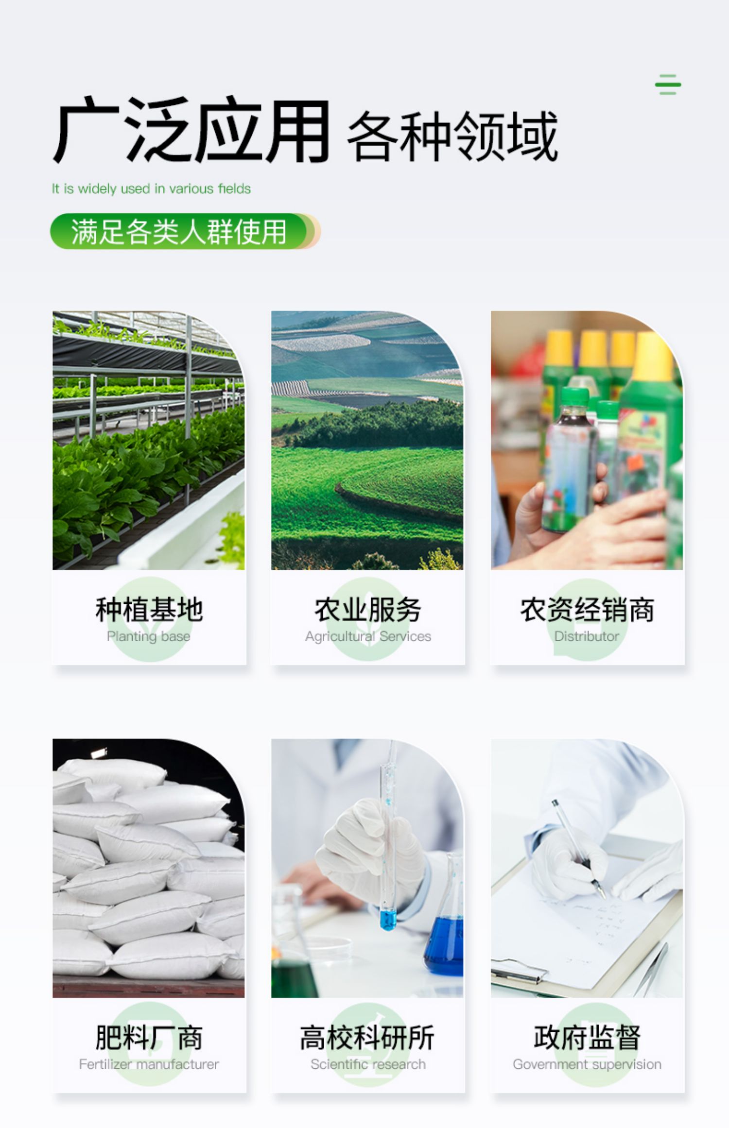 可对土壤、肥料、作物、蔬菜、水果、水质、食品等样品中的砷、铅、镉、铬、汞、铁、铝、锌、锰、铜等进行快速联合测定。