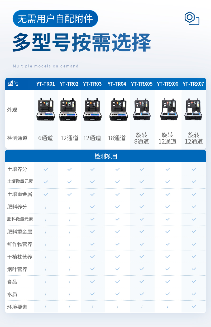 | 土壤氮磷钾误差≤1%,有机质误差≤2%,微量元素相对误差≤5%;肥料单项误差≤0.5%,氮磷钾三项误差≤1%。 | 重金属相对误差小于等于5%。 |