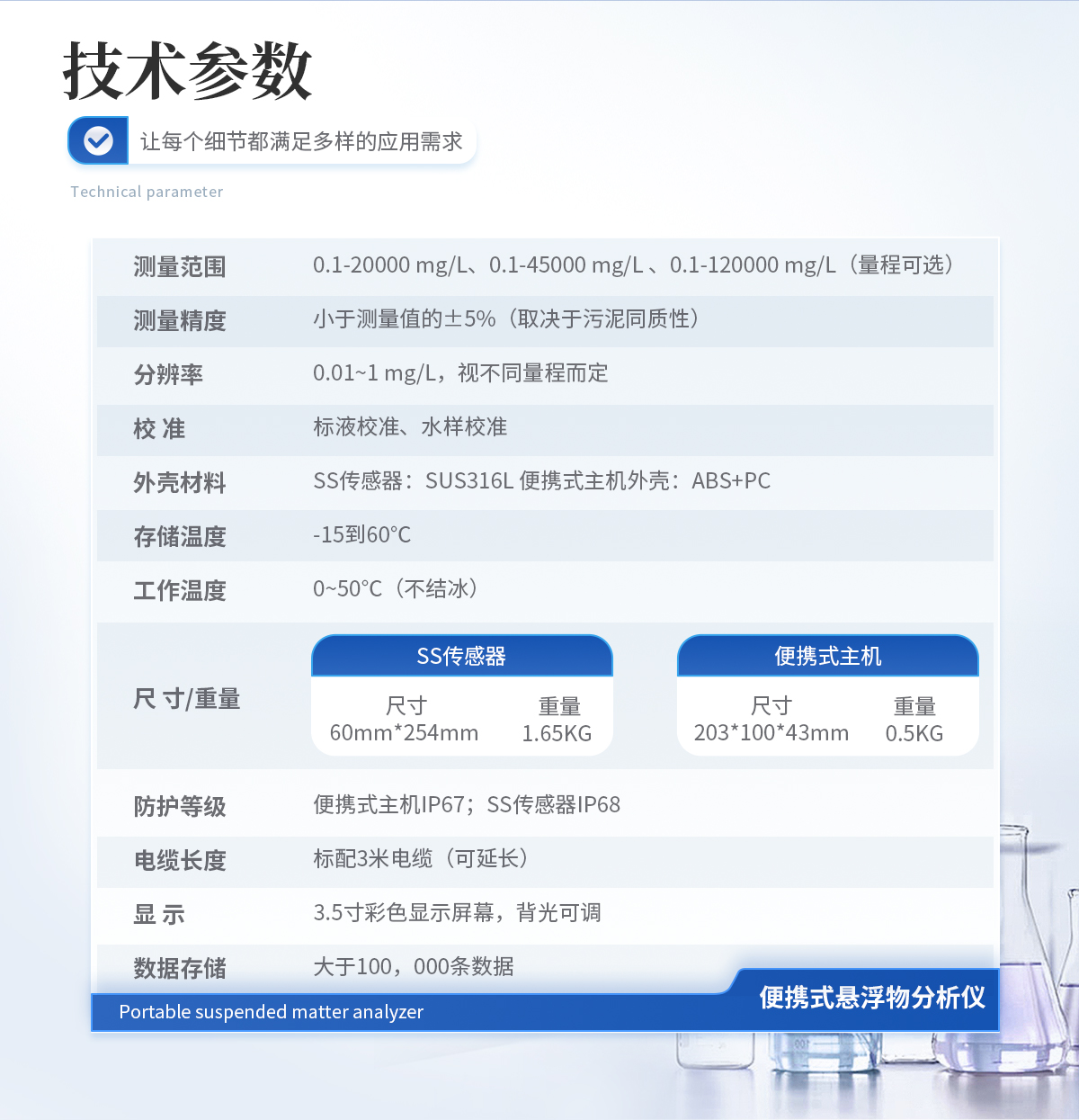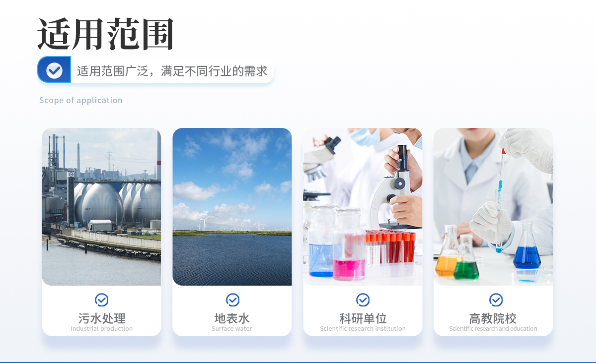 | Ø 广泛应用于污水处理、地表水、高校、科研单位等领域水质悬浮物的现场便携式监测; |