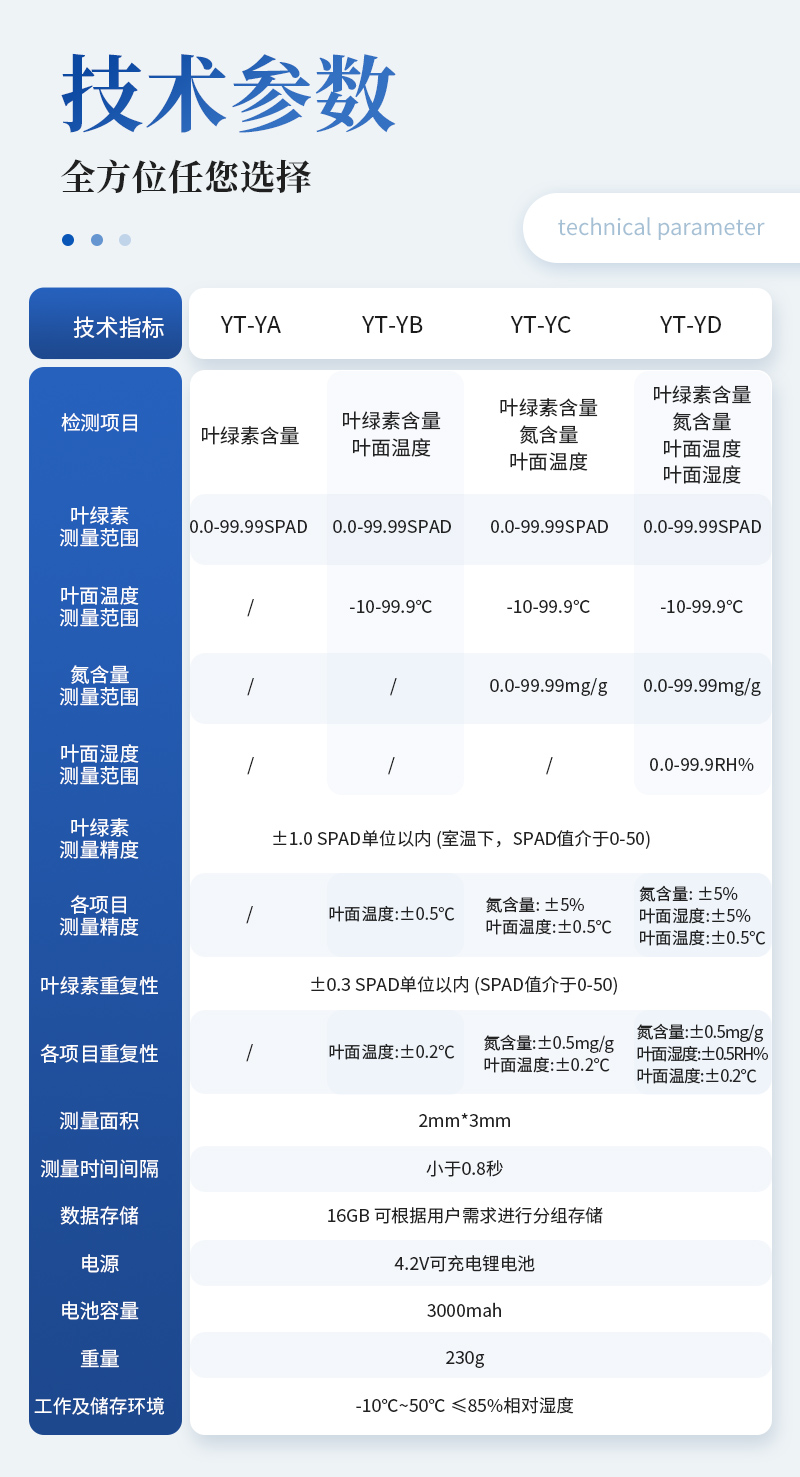 氮含量:±0.5mg/g 叶面湿度:±0.5RH% 叶面温度:±0.2℃