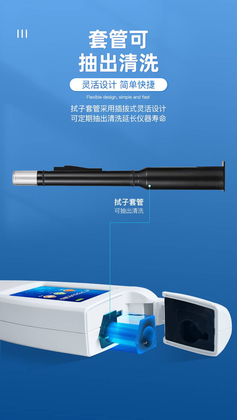 体验更好 —— 试子套管采用插拔式灵活设计,可定期清洗长期使用,延长仪器寿命。